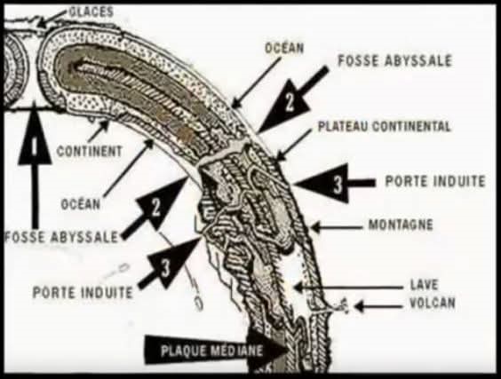 2-sel jelezve olyan mélységi árokat, amelyek az óceánok fenekének bizonyos területén találhatók, és közvetlen járatok a Külső és a Belső Föld között, olyanok, mint egy 1300 km mély óriási feneketlen kút!