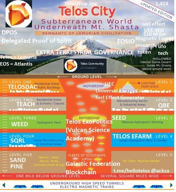 Maga Telosz városa, amint korábban mondtam, egy hatalmas kupolaszerű barlangban épült fel, amely több száz méter magas az aljától a mennyezetig, és a Shasta-hegy aljának szélességéig ér.